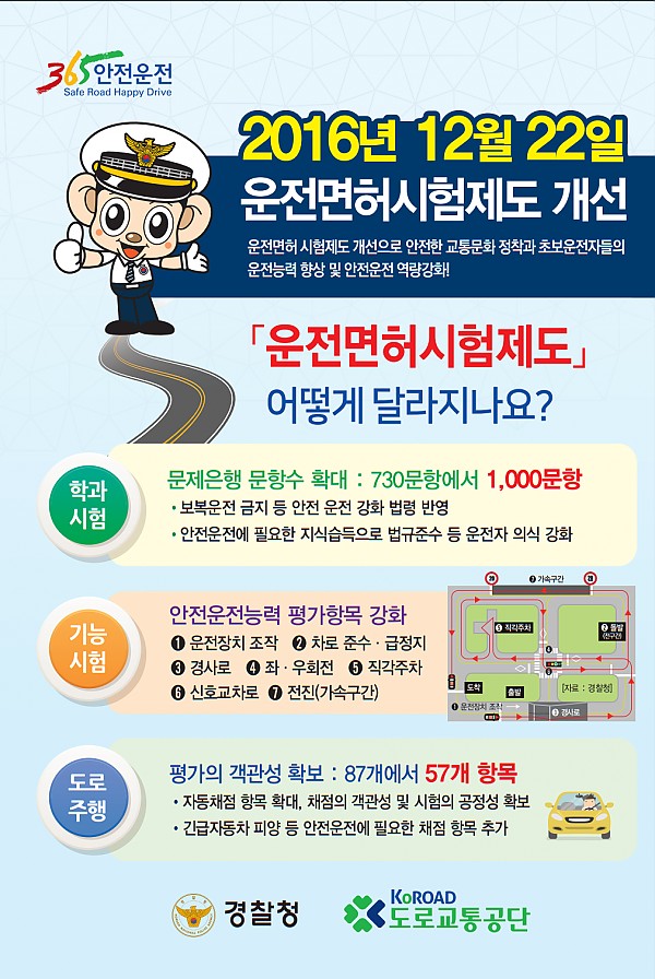안녕하세요 영진 자동차운전 전문학원 입니다.2016년 12월 22일 부터 시행되는 시험제도 개선안 안내입니다. |