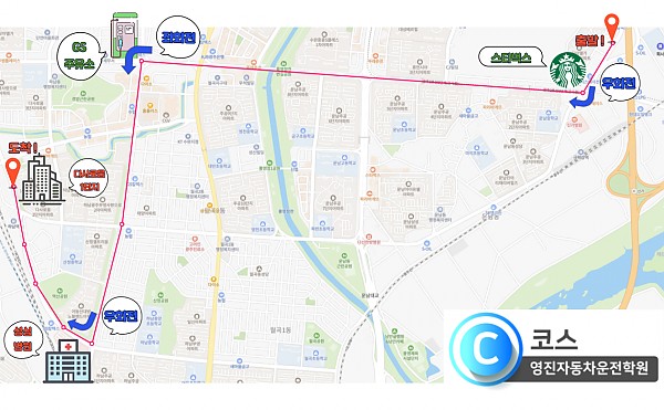 안녕하세요. 영진자동차운전전문학원입니다.수완지구 지하철공사로 인하여도로가 혼잡하고 위험성이 높아 불가피하게도로주행 C,D코스를 2025년 9월 1일부로 변경됩니다.아직 도로주행 과정을 수료하지 못한 교육생들 께서는 일정 예약시 참고 부탁드립니다.아래 변경되는 C,D코스 참고해주세요. ^^ . 감사합니다.